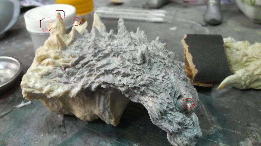 そして今回問題になった口閉じ、キットの口の中を全部切り取り接着、牙はエポパテで制作しました。