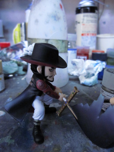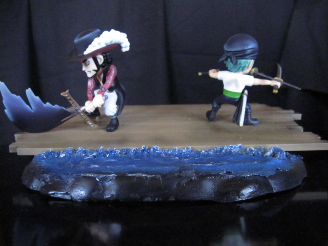 今回はゾロと鷹の目が初めて出会った時のジオラマを作りました。